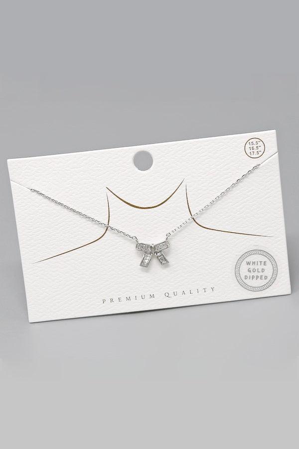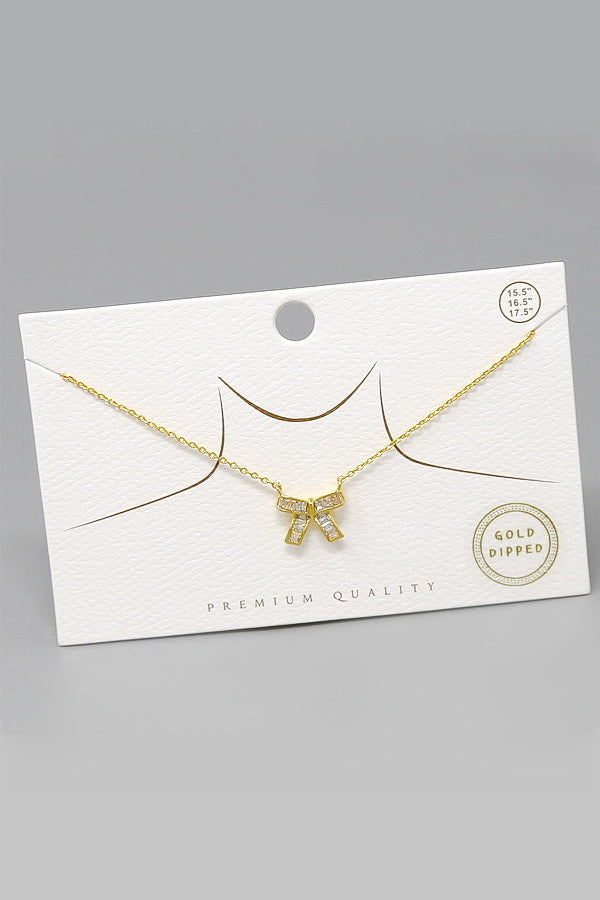 Bow CZ Stone Pave Pendant Gold Dipped Necklace