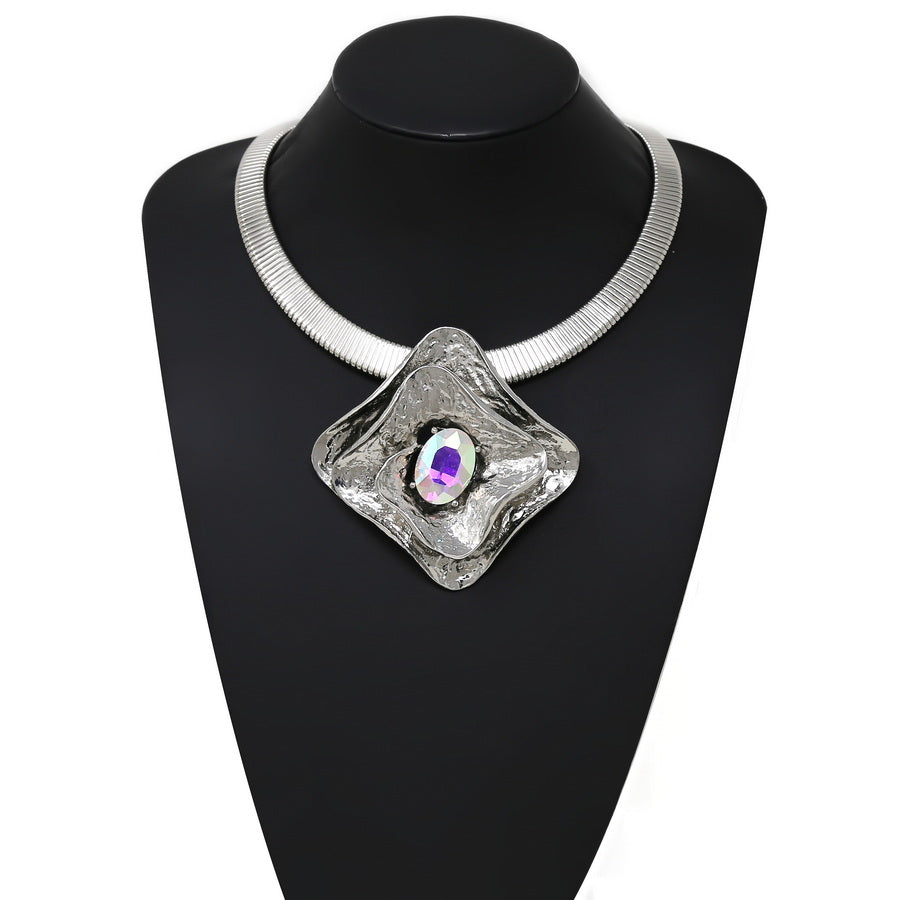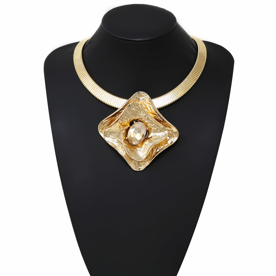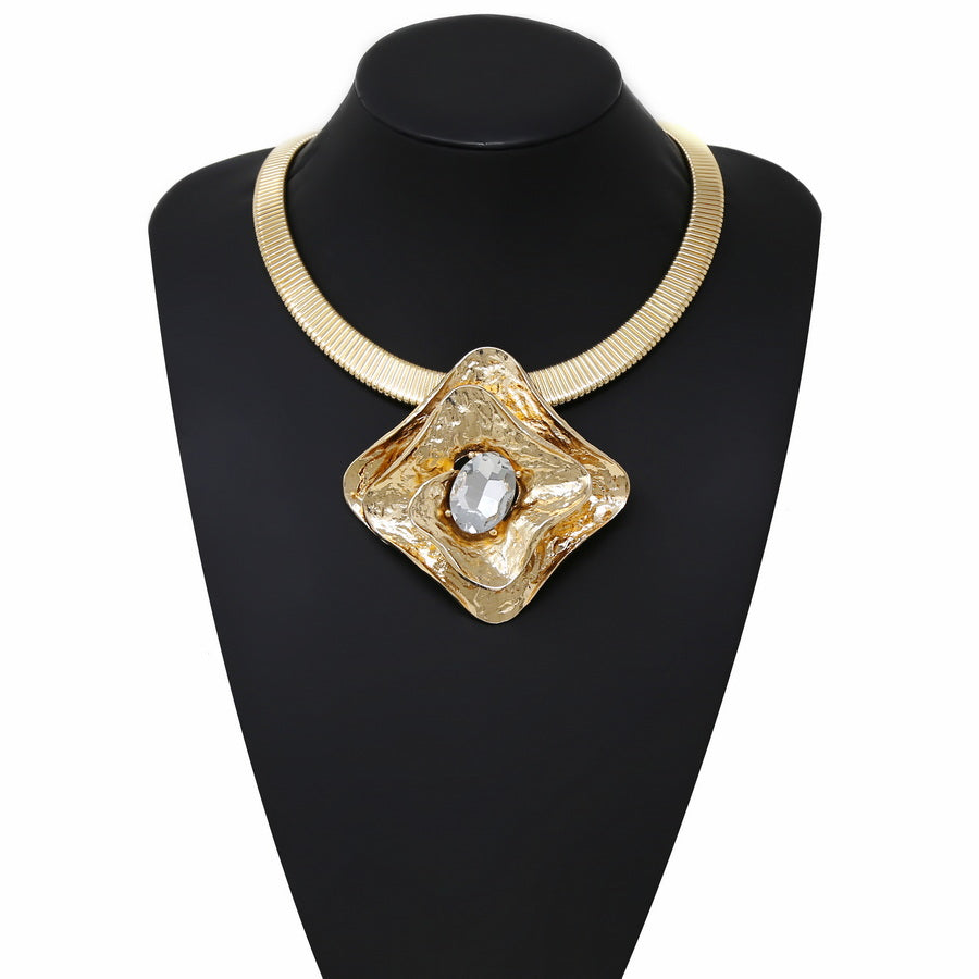 Chunky Rhombus Pendant Flattened Spring Short Necklace