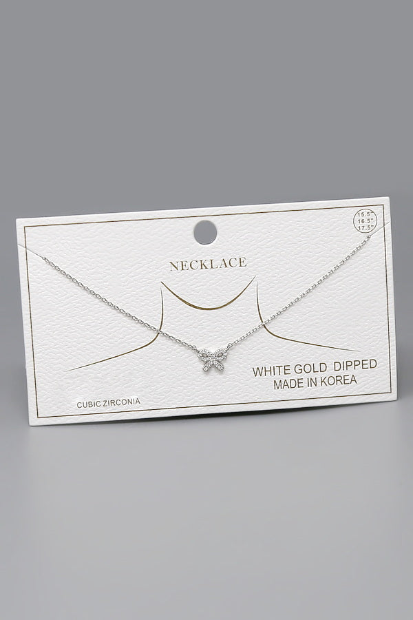 CZ Pave Bow Pendant Gold Dipped Chain Necklace