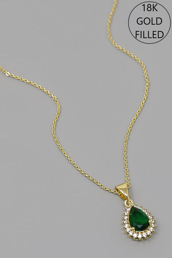 CZ Pave Teardrop Pendant Gold Filled Short Necklace