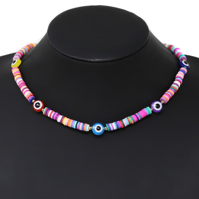 Evil Eye Charm Station Disc Beaded Short Necklace