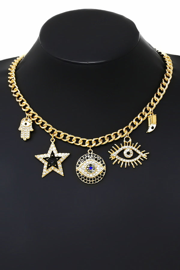 Hamsa And Evil Eye Multi Charm Chain Necklace