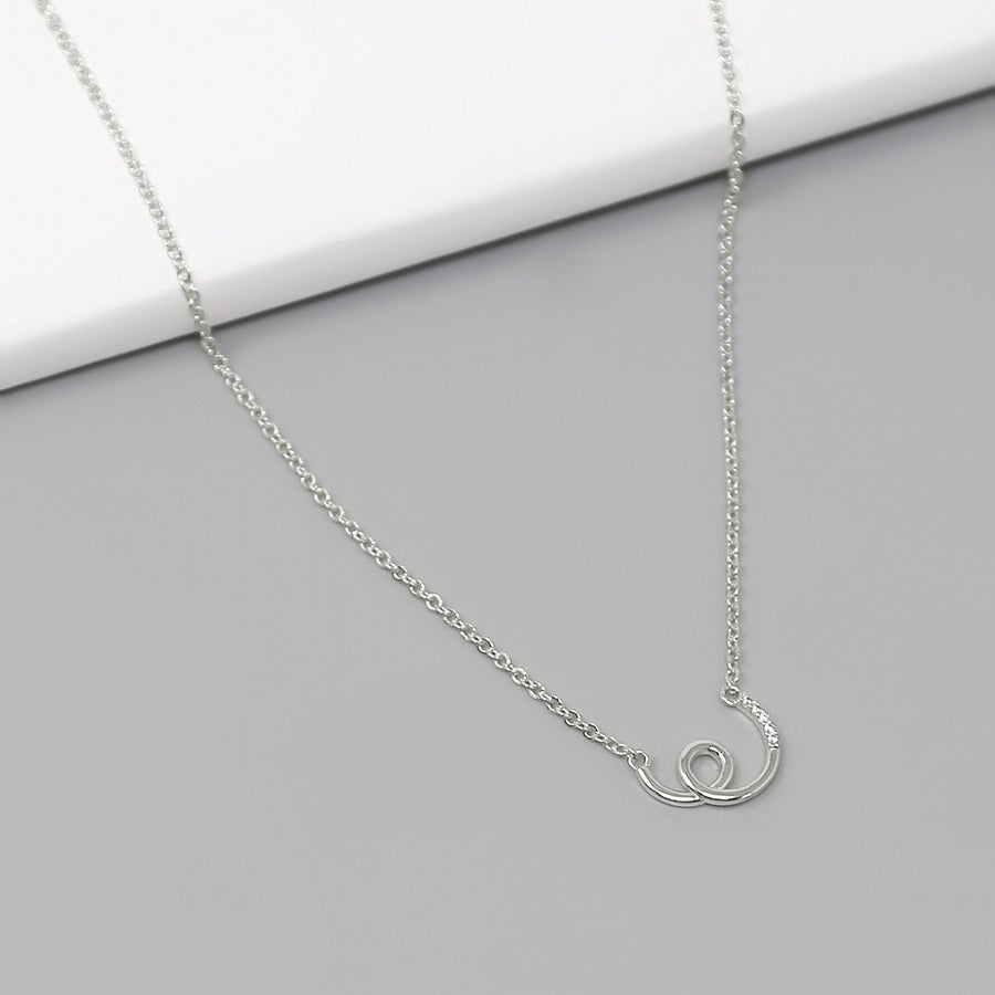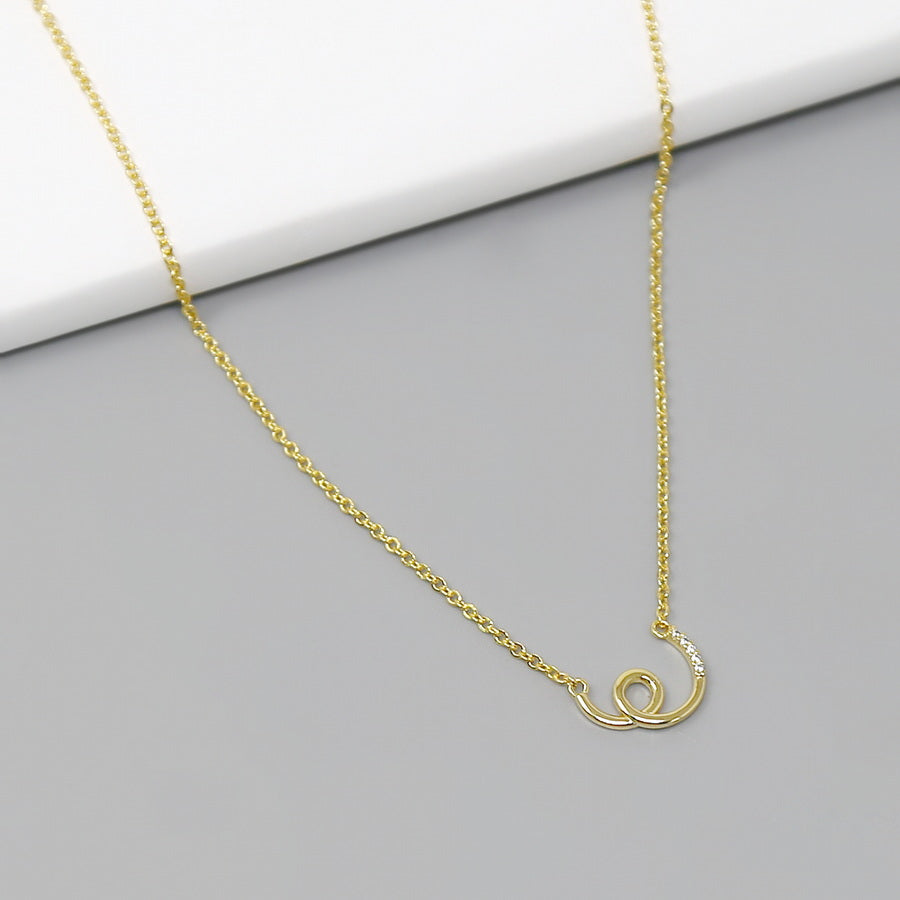 Metal Swirl CZ Stone Pendant Short Chain Necklace