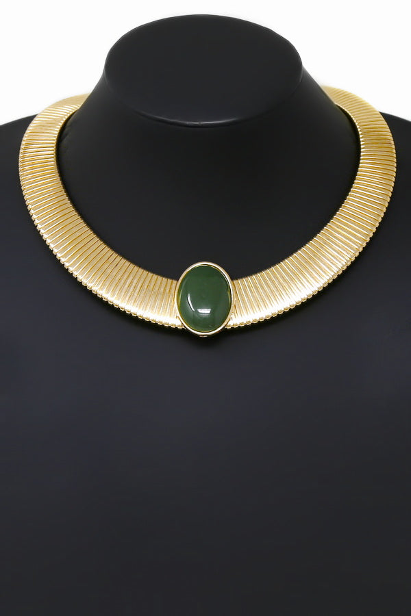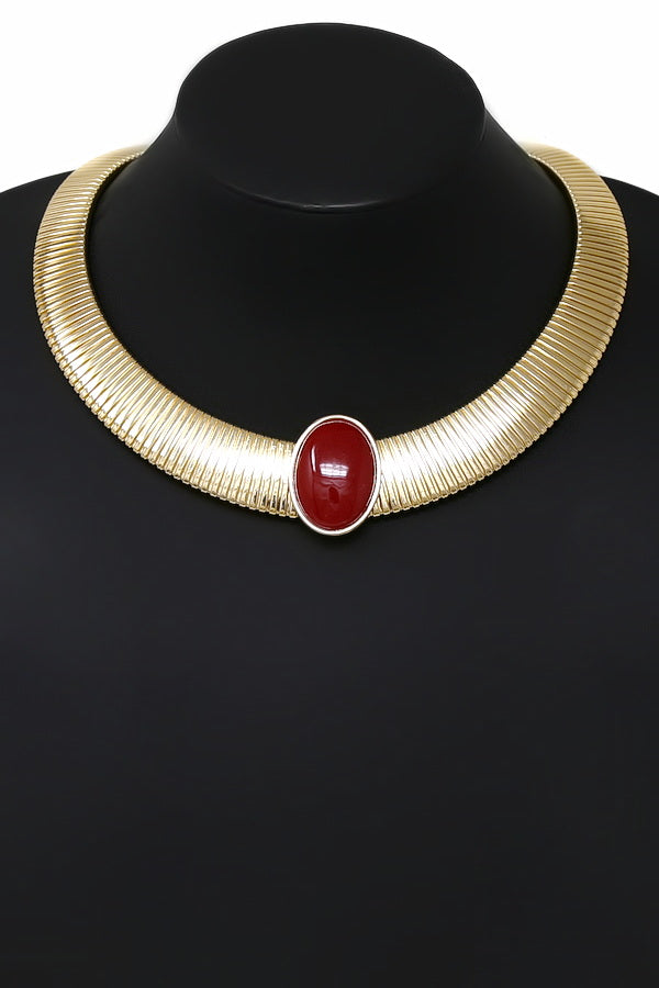 Oval Pendant Flattened Spring Collar Necklace