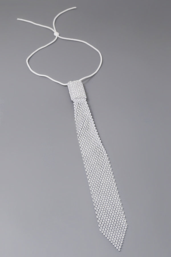 Rhinestone Mesh Tie Necklace