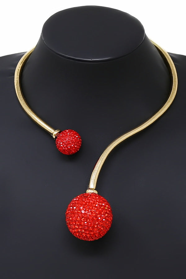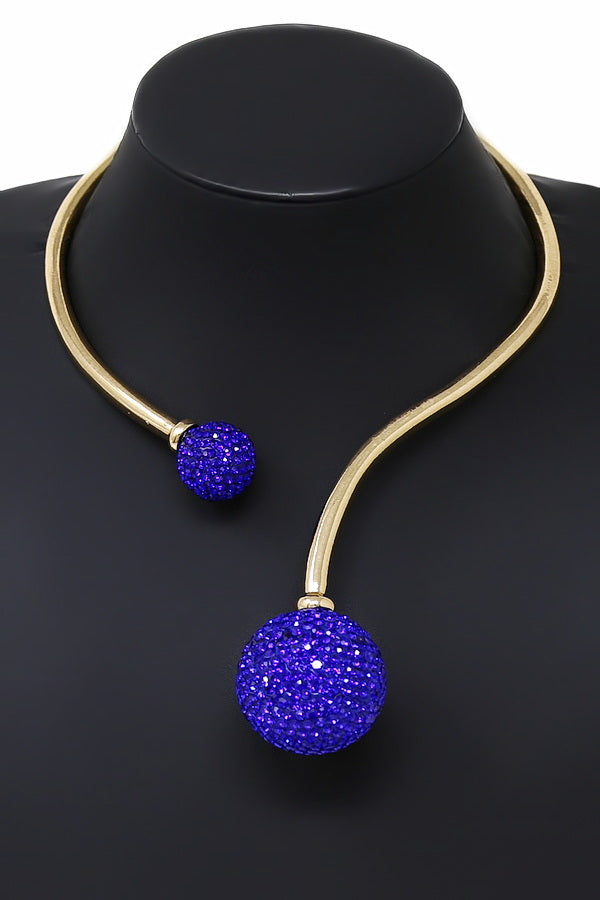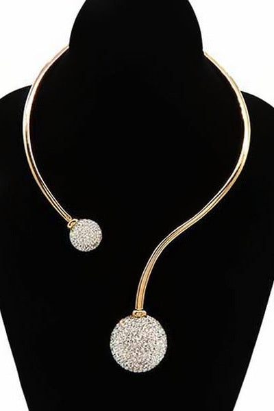 Rhinestone Pave Disco Ball Metal Hinge Necklace