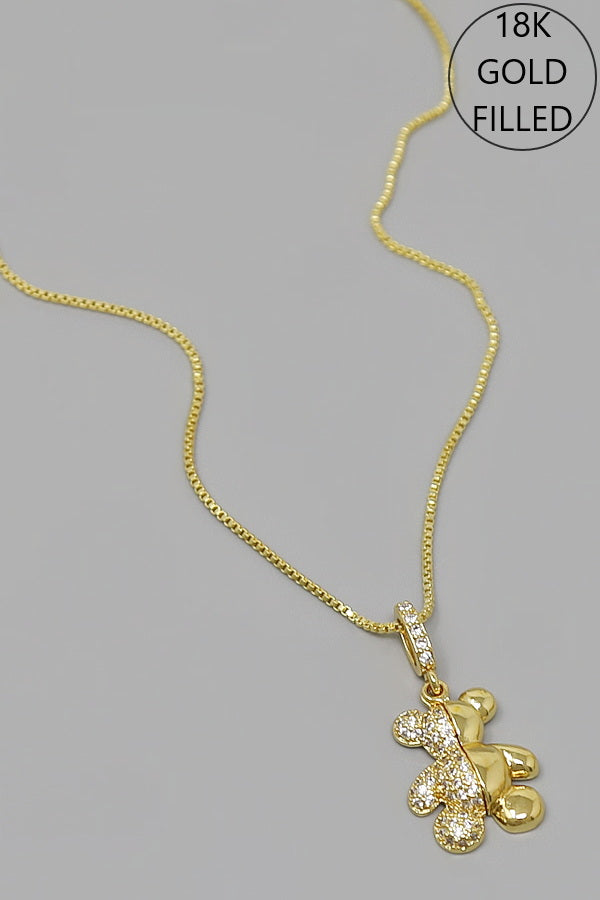 Teddy Bear CZ Pave Pendant Gold Filled Short Necklace