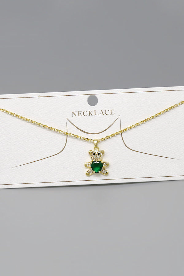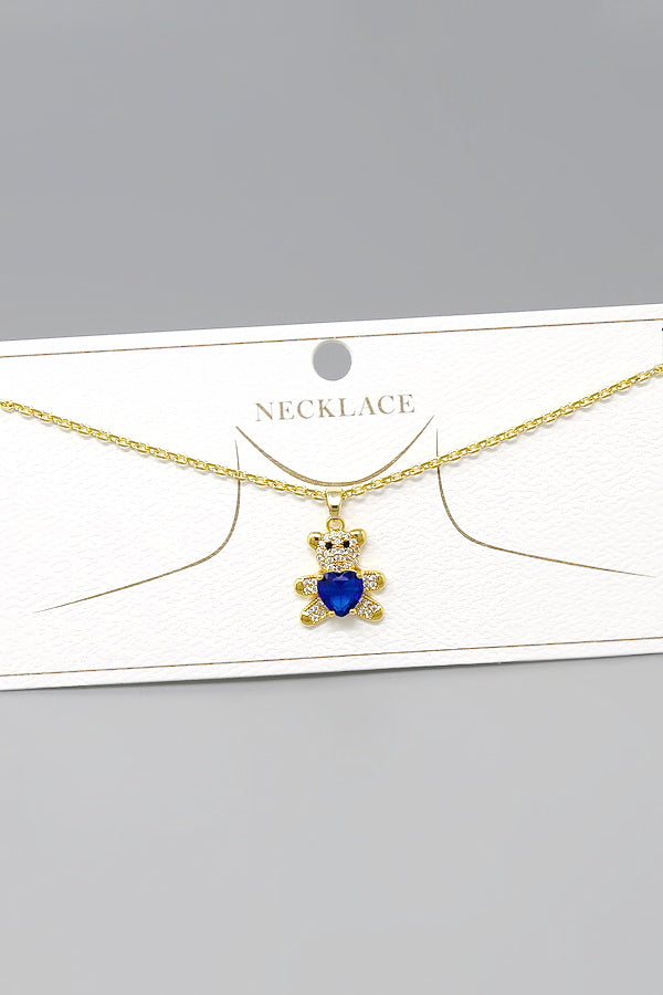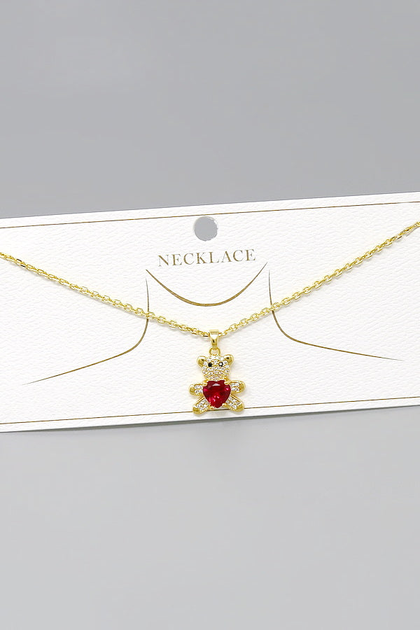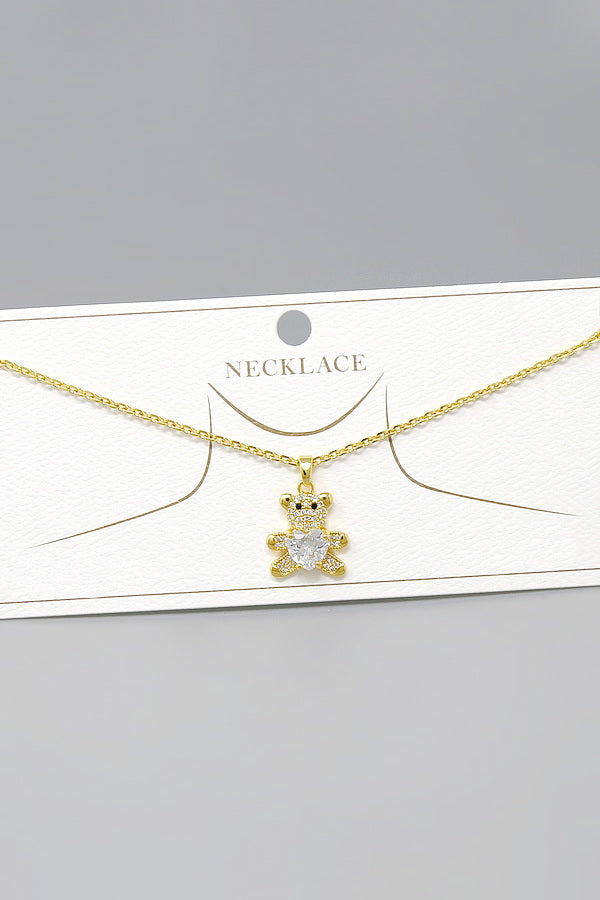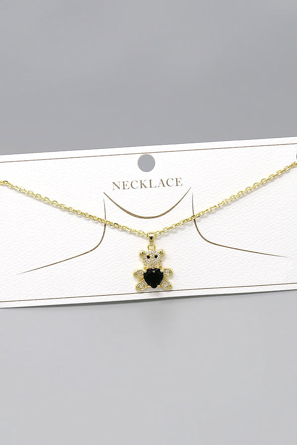 Teddy Bear CZ Pave Pendant Short Chain Necklace