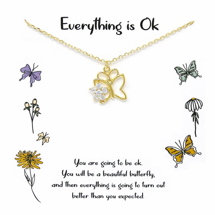 Tell Your Story: EVERYTHING IS OK Butterfly Pendant Short Necklace