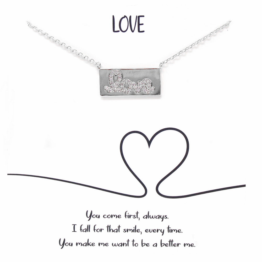 Tell Your Story: LOVE CZ Pave Plate Simple Chain Necklace