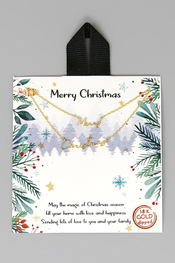 Tell Your Story: Merry Christmas Script Pendant Layered Chain Necklace