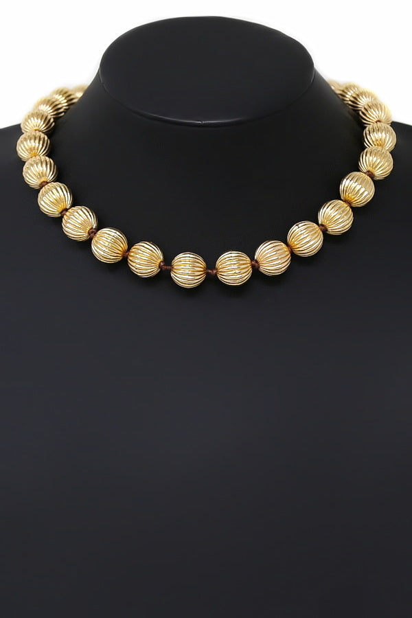 Textured Metal Bead Short Necklace