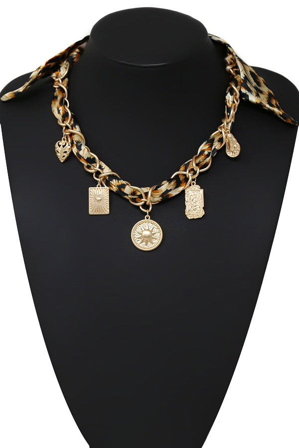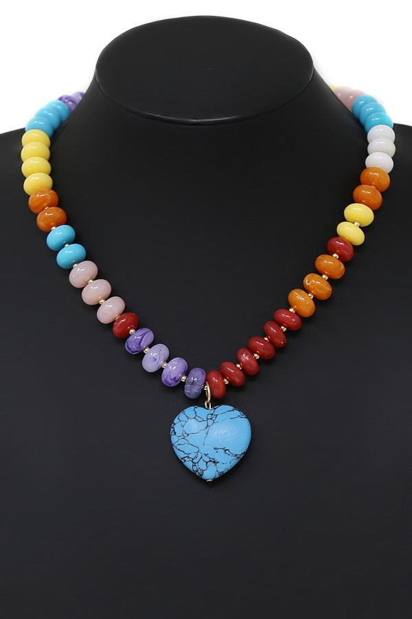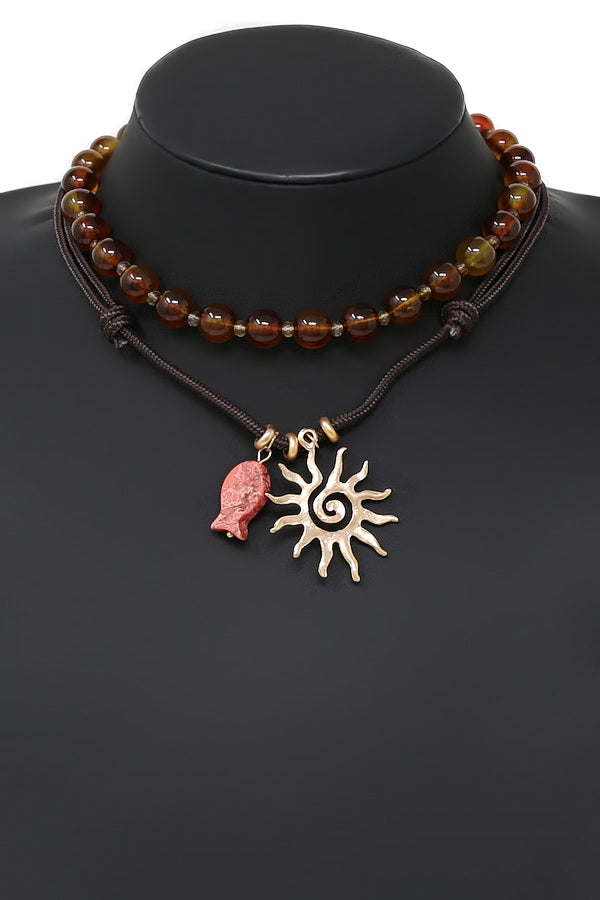 Sun And Fish Pendant Beaded Cord Layered Necklace