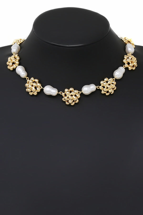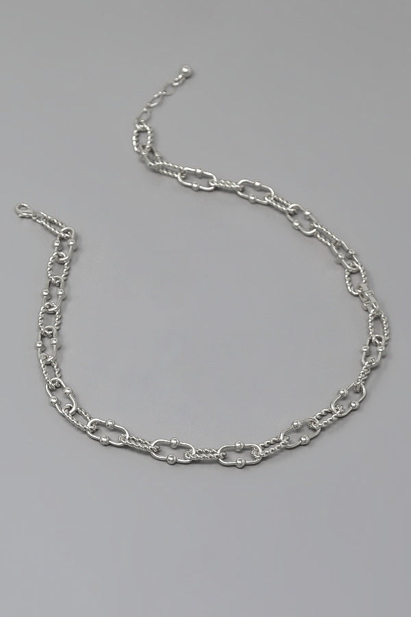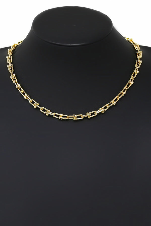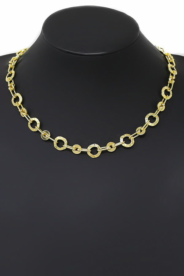 Rectangle Textured Link Gold Dipped Chain Necklace