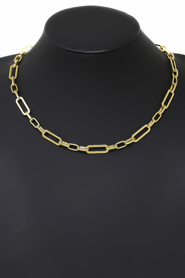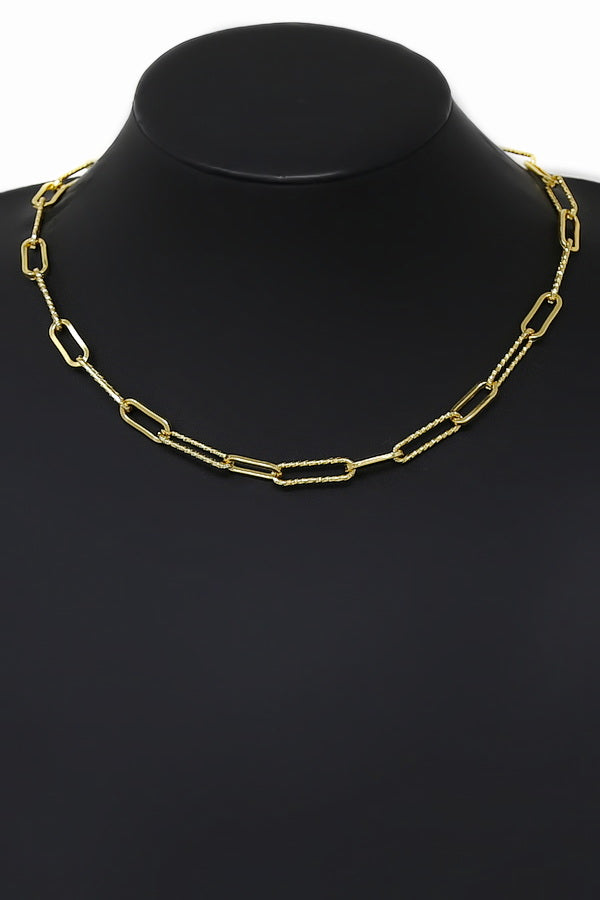 Gold Dipped Textured Paperclip Link Chain Necklace