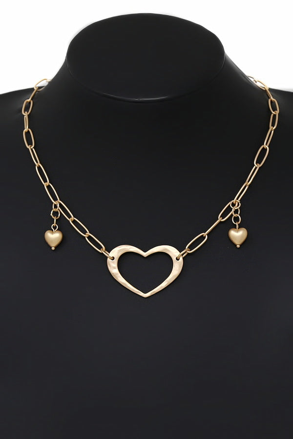 Heart Pendant Matte Finish Paperclip Chain Necklace