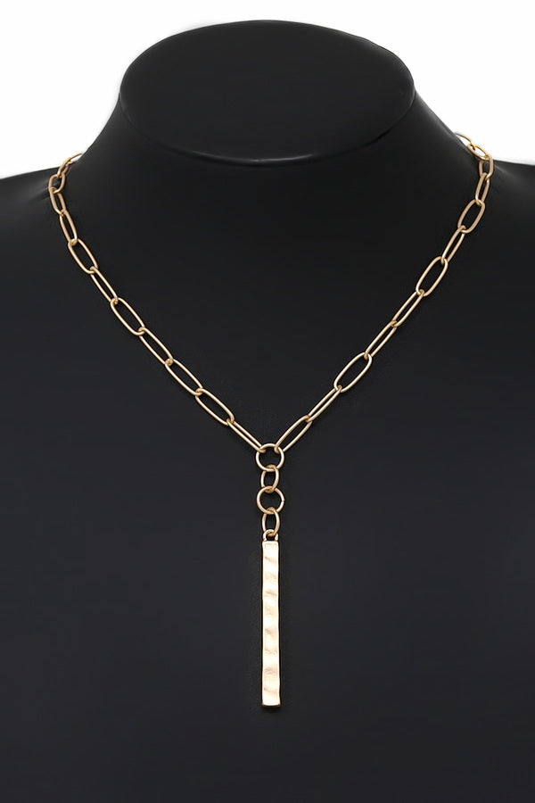 Bar Pendant Matte Finish Paperclip Chain Necklace
