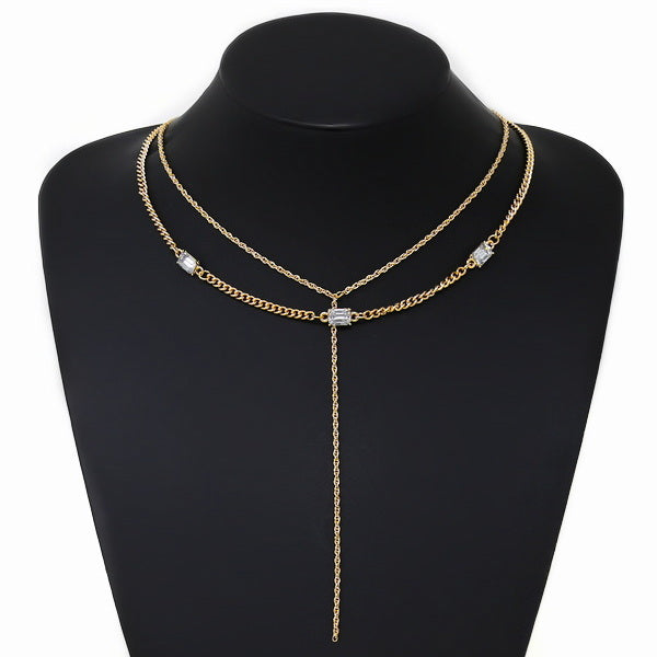 Baguette Stone Station Layered Chain Necklace
