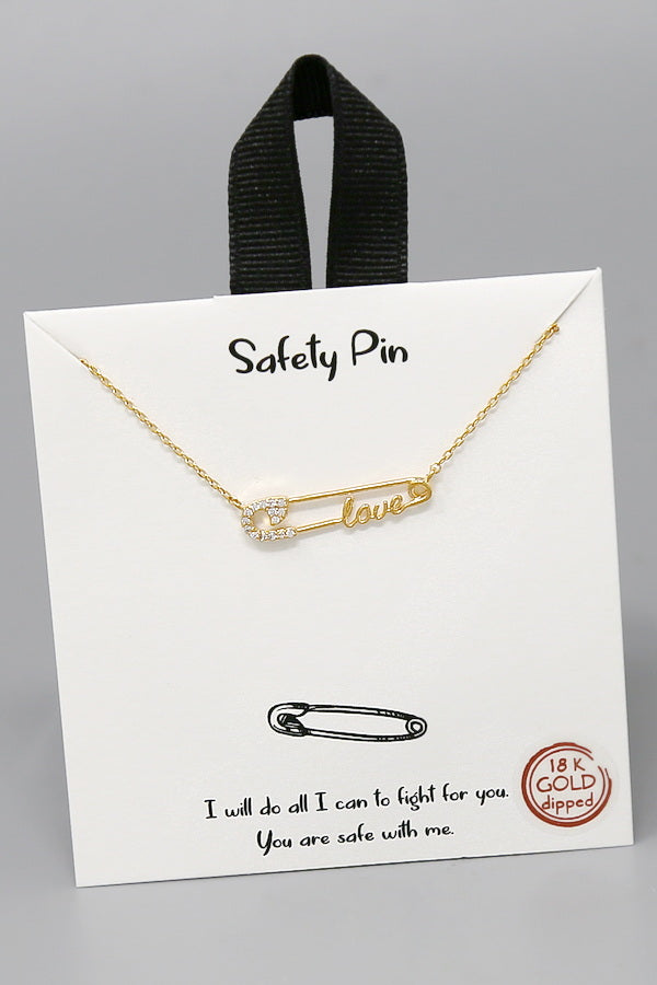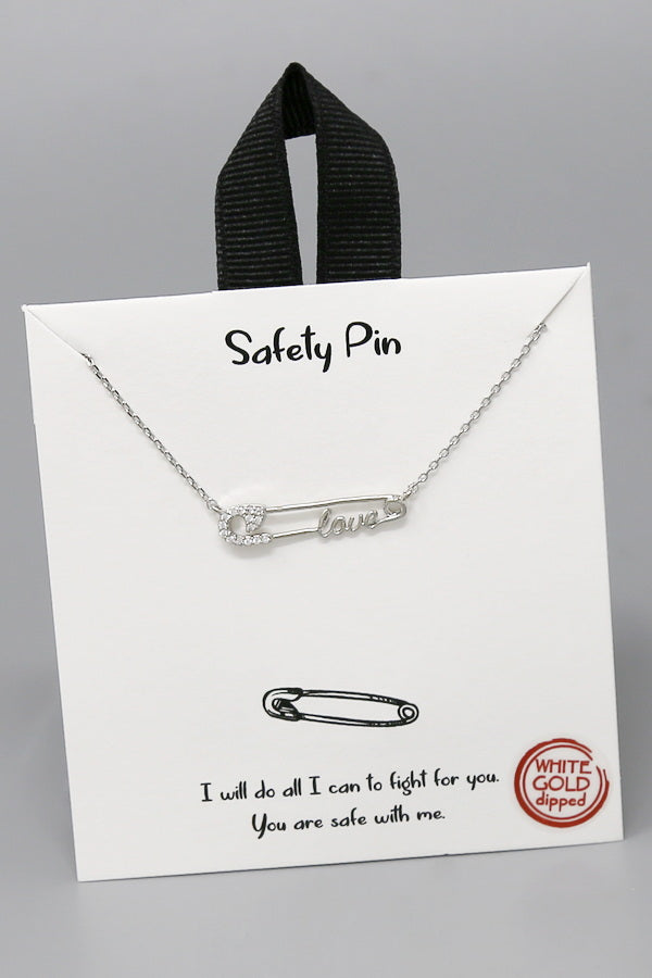 Tell Your Story: Safety Pin Love Script Pendant Short Necklace