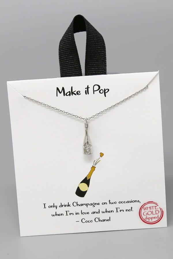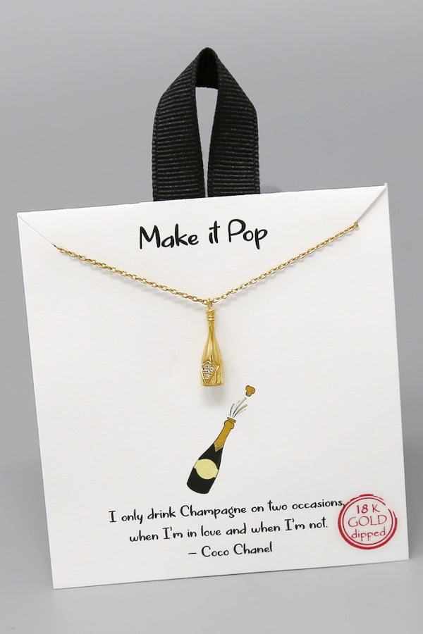 Tell Your Story: Make It Pop Champagne Bottle Pave Pendant Short Necklace