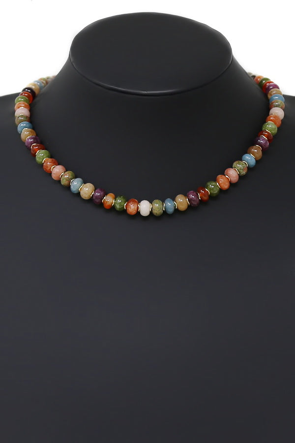Toggle Pendant Semi Precious Stone Beaded Short Necklace