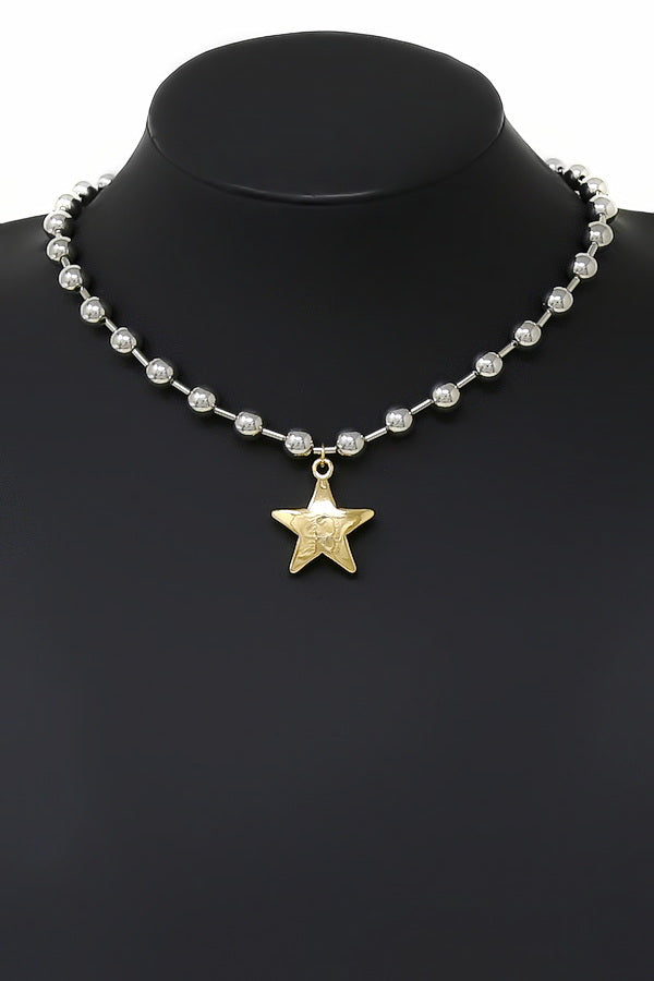 Puffy Star Pendant Metal Ball Beaded Necklace