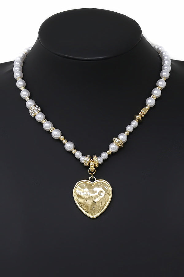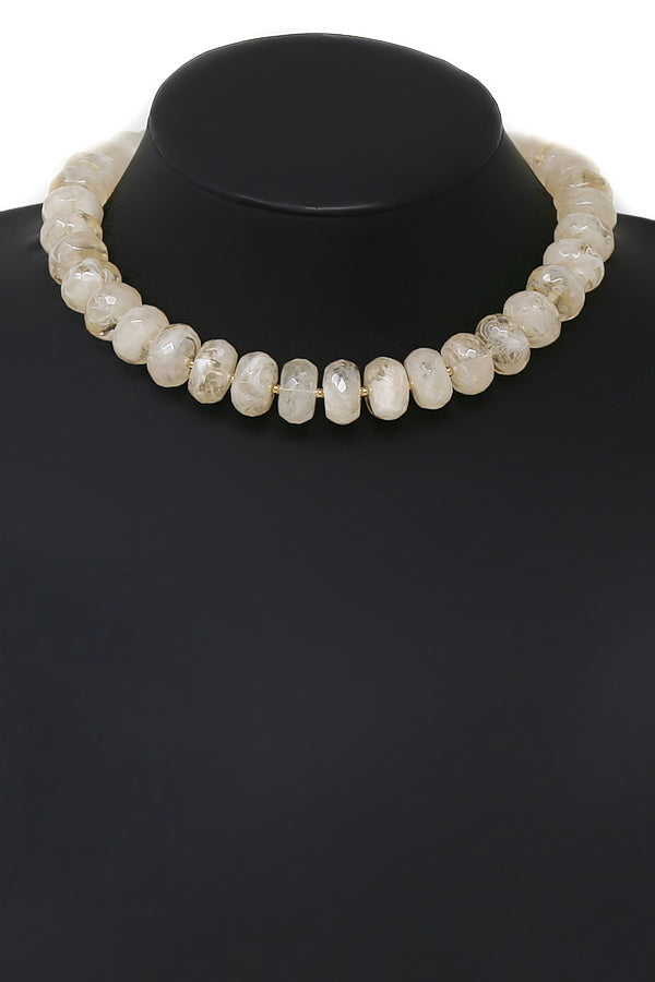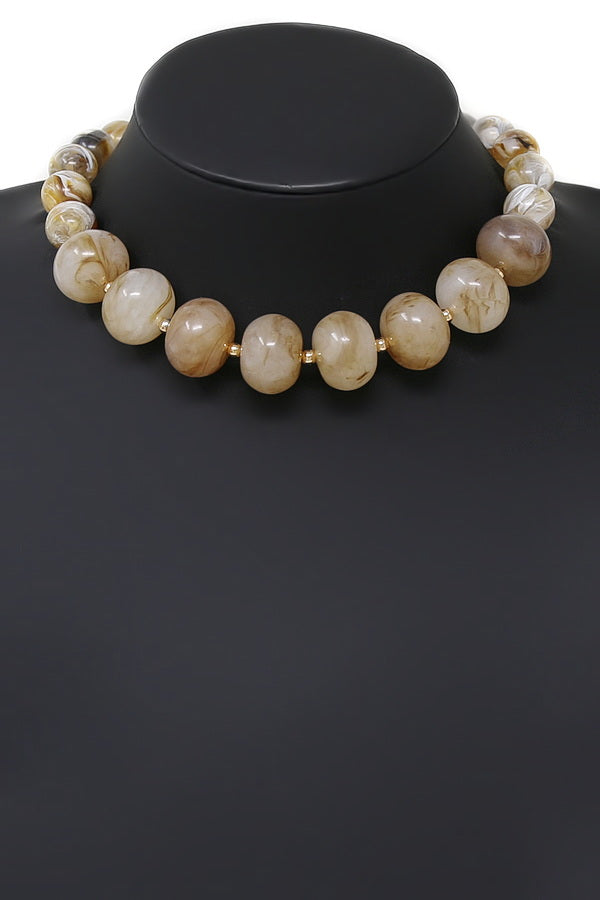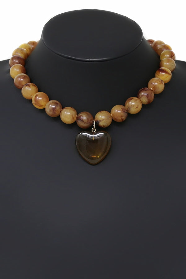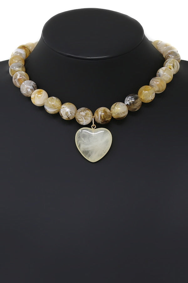 Heart Pendant Marble Acetate Beaded Short Necklace