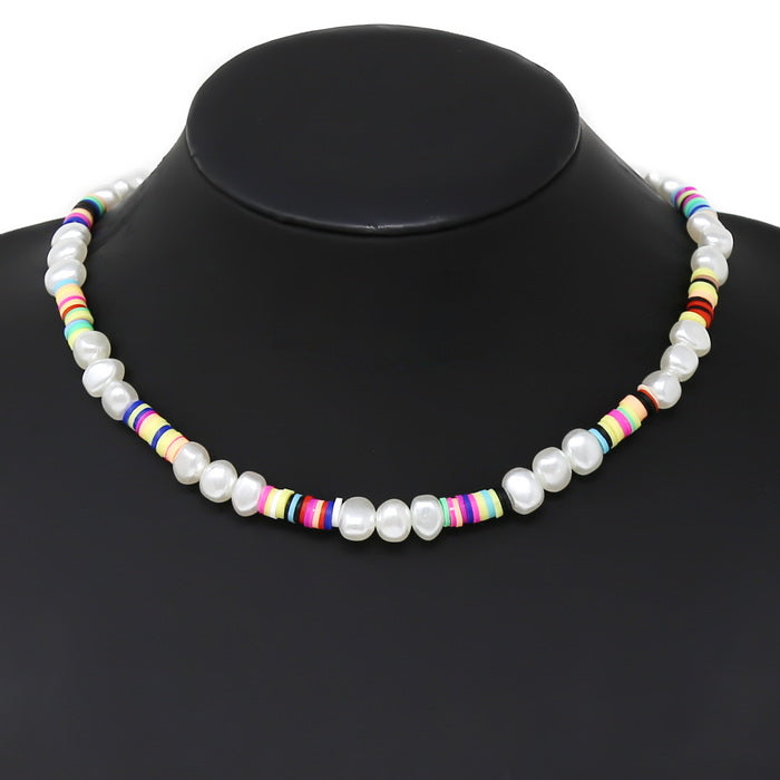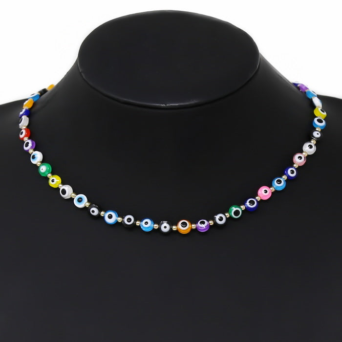 Evil Eye Charm Station Pearl Beaded Short Necklace