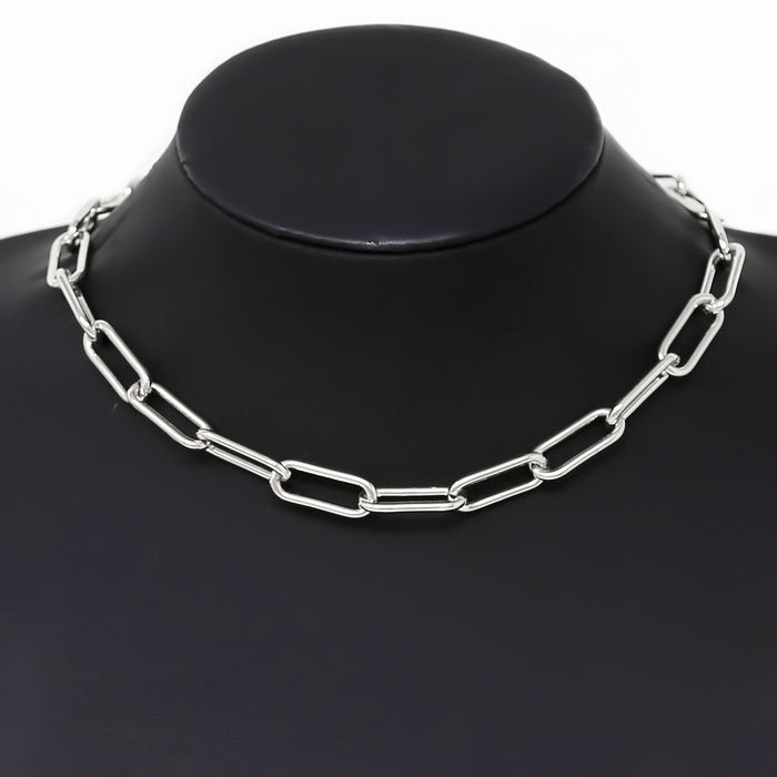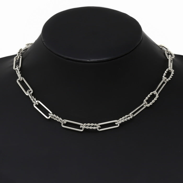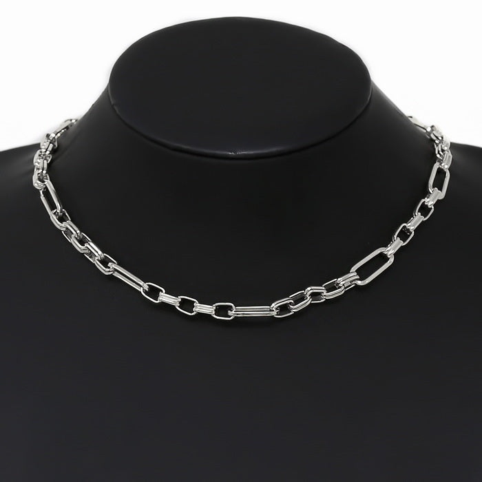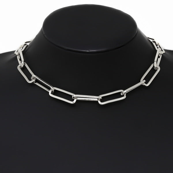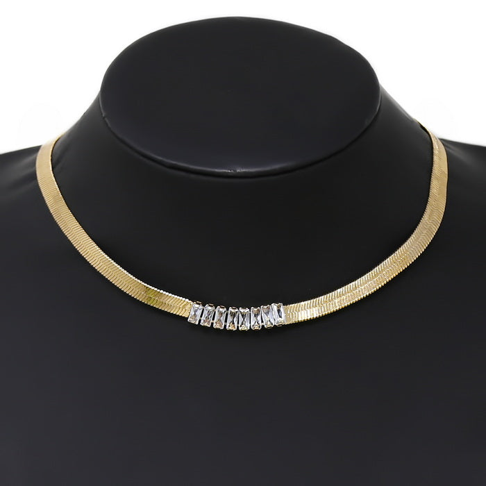 Emerald Cut Stone Detail Herringbone Short Necklace