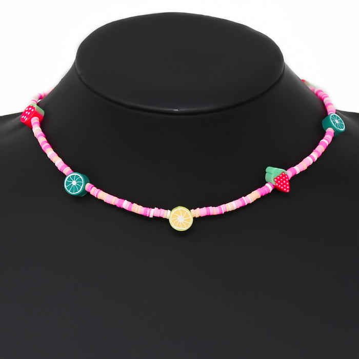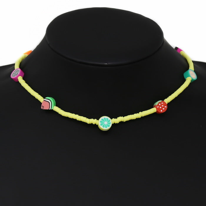 Fruit Charm Station Clay Disc Beaded Short Necklace
