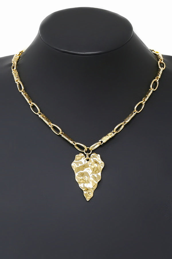 Hammered Heart Pendant Textured Chain Short Necklace