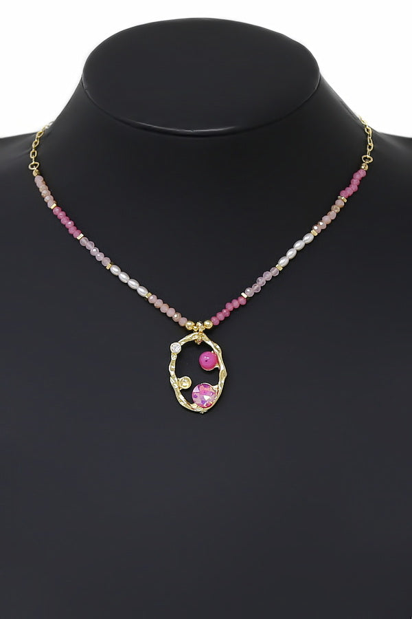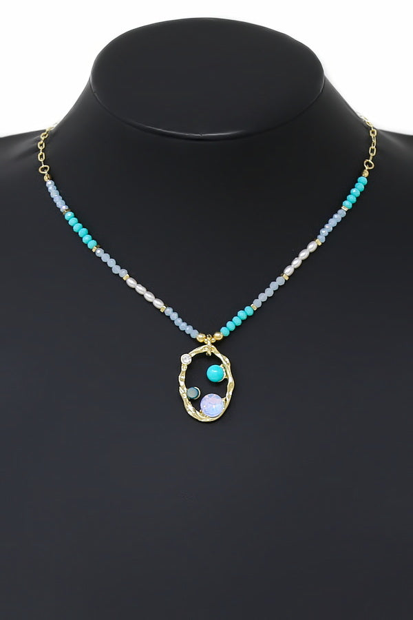 Open Frame Organic Pendant Dainty Beaded Necklace