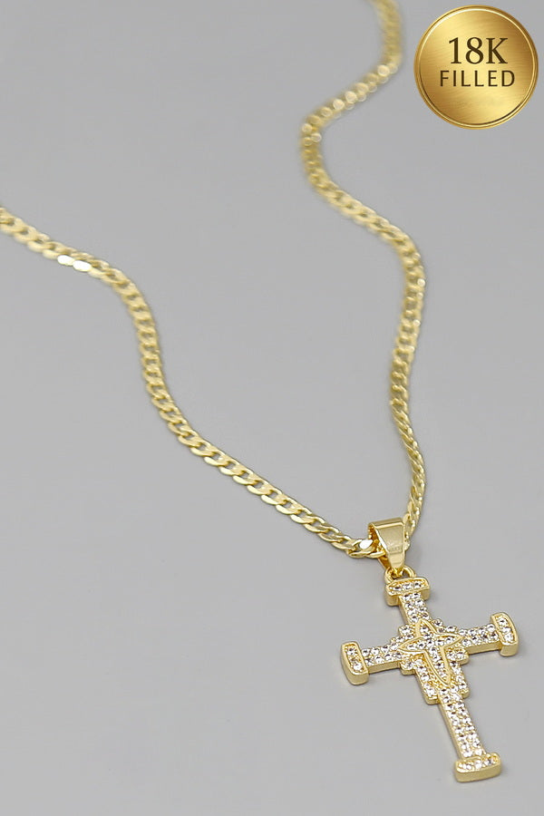 Pave Cross Pendant Gold Filled Curb Chain Necklace