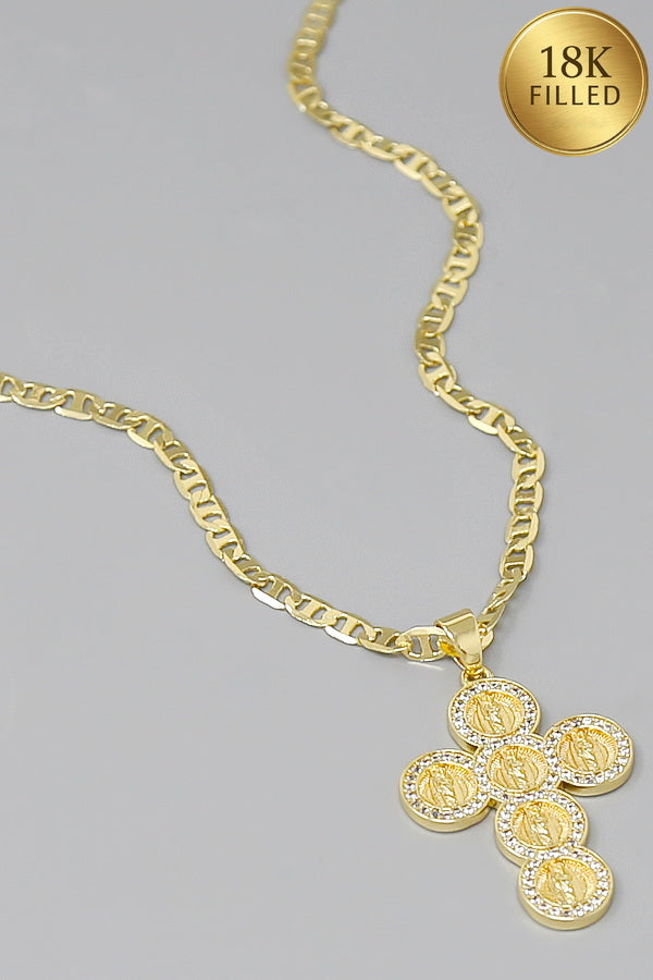 Pave Cross Pendant Gold Filled Mariner Chain Necklace