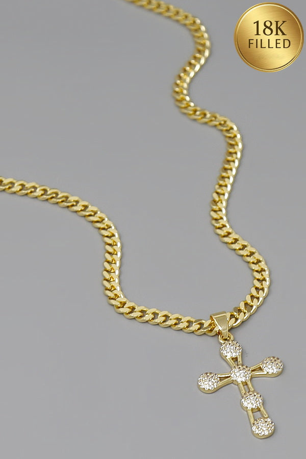 Pave Cross Pendant Gold Filled Curb Chain Necklace