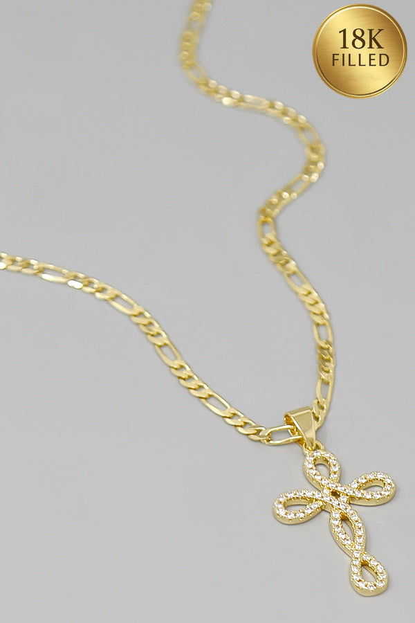 Pave Cross Pendant Gold Filled Figaro Chain Necklace