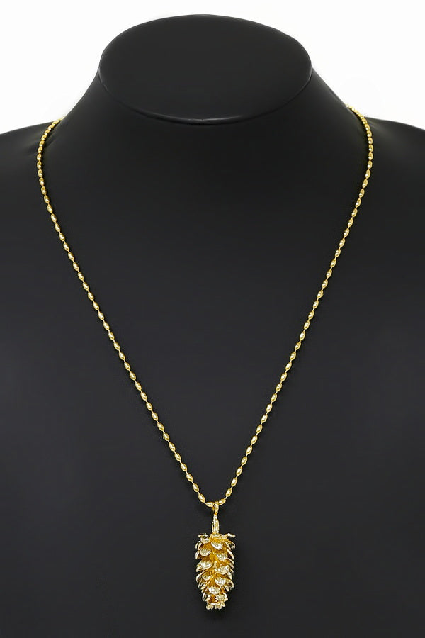 Pine Cone Pendant Rice Beaded Chain Necklace