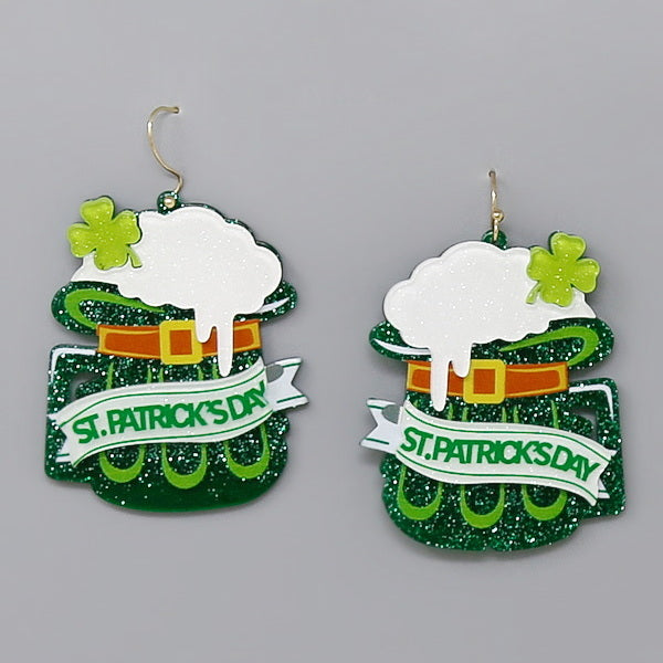 St. Patrick's Day Beer Hat Acrylic Earrings