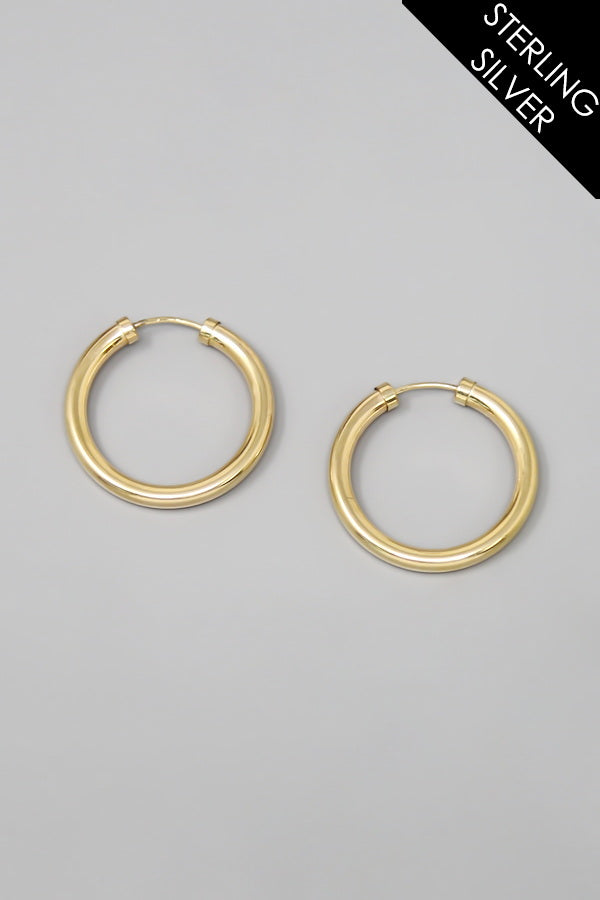 Gold Dipped Sterling Silver Basic Hoop Earrings