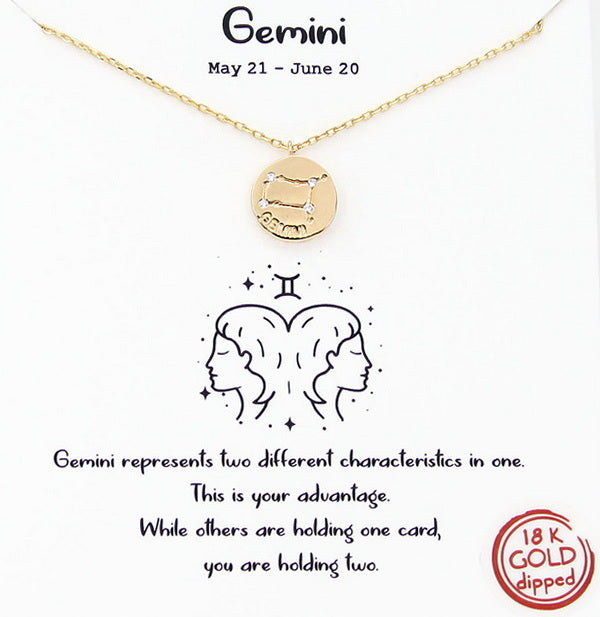 Tell Your Story: Gemini CZ Pave Zodiac Pendant Short Necklace