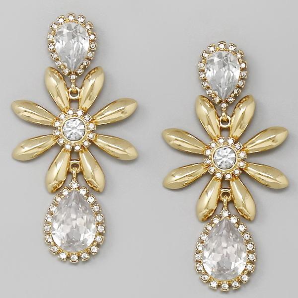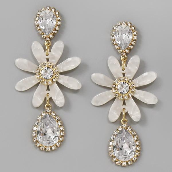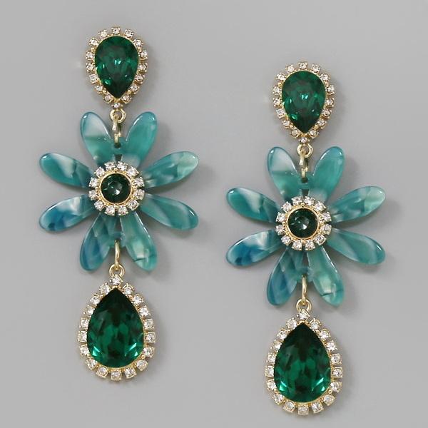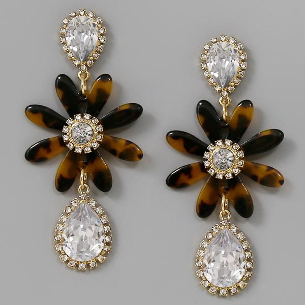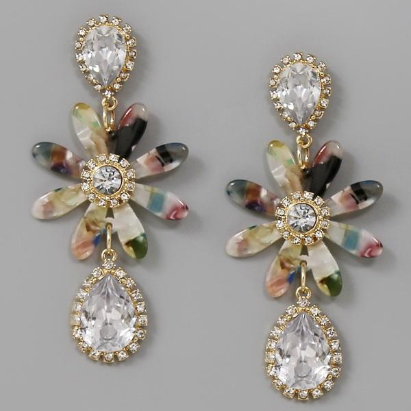 Flower With Teardrop Acetate / Metal Statement Earrings