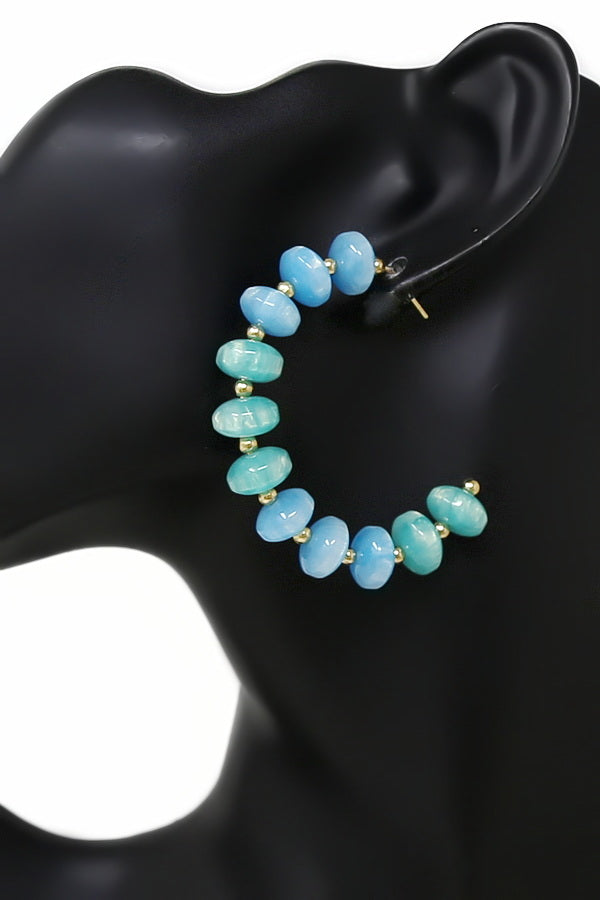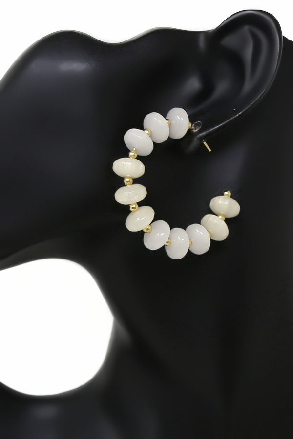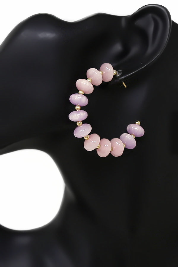 Polished Resin Rondelle Beaded Hoop Earrings