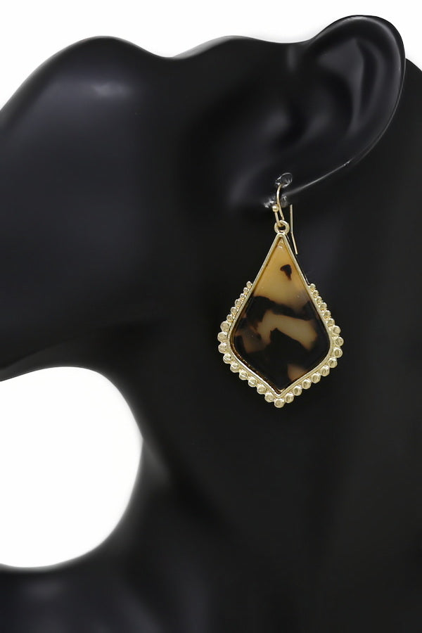 Pressed Metal Bead Frame Acrylic Drop Earrings