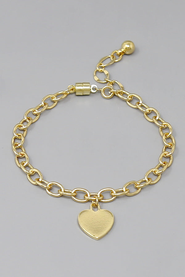 Flattened Heart Charm Gold Dipped Magnetic Bracelet