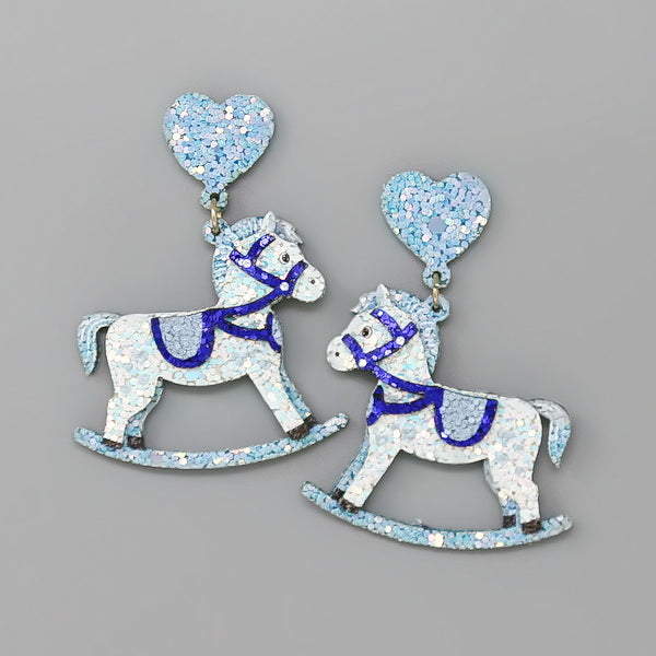 Baby Rocking Horse Glittered Dangle Earrings