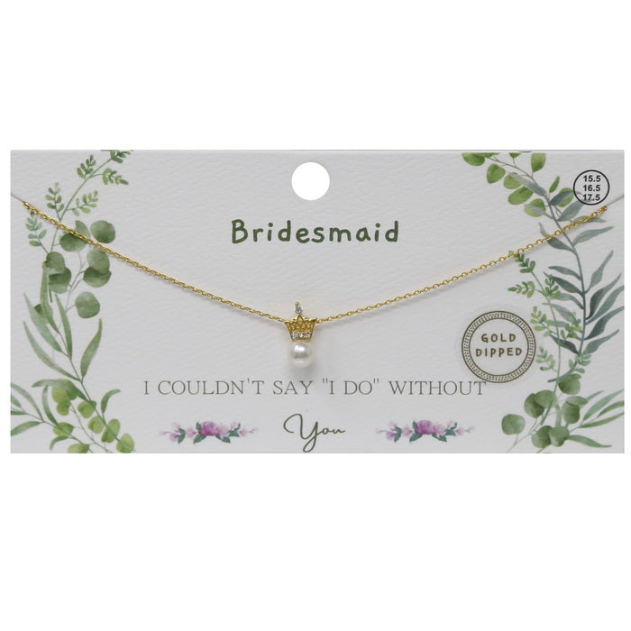 BRIDESMAID CZ Stone Crown & Pearl Pendant Gold Dipped Necklace
