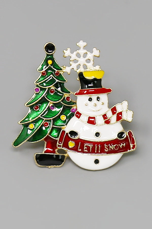 Christmas Snowman With Christmas Tree Enamel Brooch