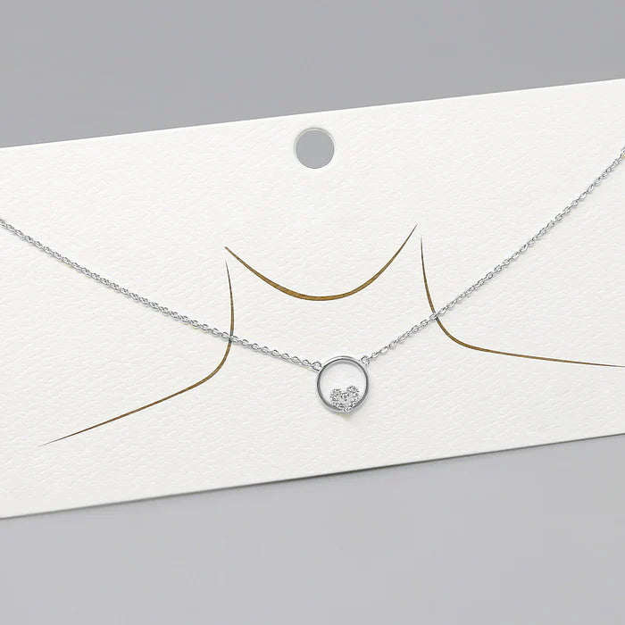 CZ Pave Mini Heart Hoop Pendant Gold Dipped Necklace