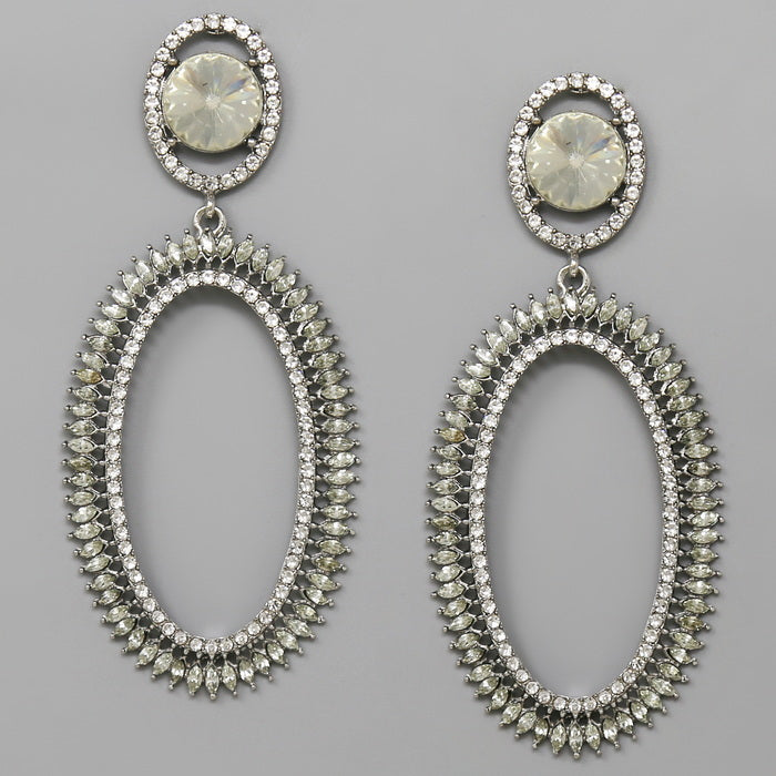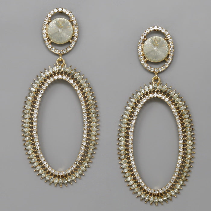 Glass Stone Pave Oval Hoop Statement Earrings