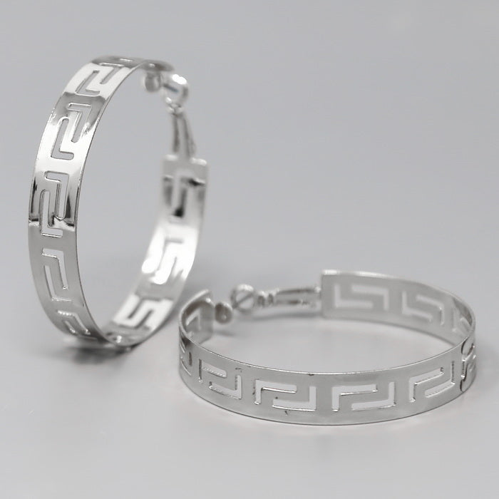 Greek Pattern Metal Hoop Earrings (50 mm)
